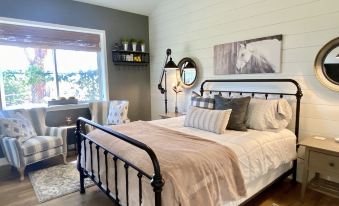 We had a wonderful stay at the Foal House! Cynthia has truly thought of everything her guests might need. The decor was adorable; down to the details! It had a fully stocked kitchen, with water for the keurig, seasonings, oils, different types of sweeteners, and fresh oranges and lemons from her trees. There was a sweet note left in the antique typewriter, welcoming each of us by name. There was a little basket of snacks. The beds were comfortable with fluffy blankets and pillows.
