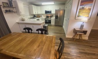 The design of this house is modern organic with Central Oregon art and features. It has a spacious backyard, a 40 x 12’ deck and lots of cozy amenities. This stylish home is a great place for a romantic getaway or to have fun with the whole family.About pets:Pets allowed: dogs and cats less than 50 lbs per pet (limit one pet total).About checkOut:Check out before 11:00 AM.About children:Children allowed: ages 0-17.About checkIn:Check in after 4:00 PM.About smoking:Smoking is not permitted.About minBookingAge:Minimum age to rent: 18.About events:Events allowed: family gatherings, birthday parties, weddings.Maximum event attendees: 8.