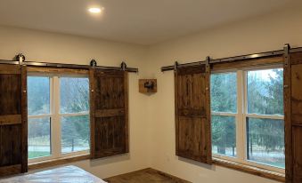 We are DONE on this 4-bedroom gem near Viola. Brand new construction that started months ago are now coming to fruition. This soothing house features 4 king beds, 5 bathrooms with showers, heating, WiFi, AC, and a washer and dryer. The calming ambiance of this amazing property will make guests feel right at home. Less than a mile to the popular wedding venue Chapters on the Horizon. This is brand new construction, and we have 5 thermostats in the house. EACH bedroom suite has its own thermostat, so you can control you own temp. This is NOT an old farmhouse where there is 1 thermostat and that controls the heat or cold for every room. Also, each bedroom has its own vanity, shower, toilet, and large mirrors. This is perfect for several couples attending a wedding nearby or vacationing in the area. No need to share bathrooms, mirrors, toilets, etc. as every suite has its own KING bed and bathrooms. Add in a full kitchen and living room downstairs, beautiful views of the Driftless region, and you will love this vacation. You will love the views with your morning coffee off our deck as the mist rises in the nearby valleys, AND the fantastic custom made rock firepit and the views that area offers in the evenings. Kayaking and canoeing are so close by on the beautiful Kickapoo river. Deer, Turkeys, lots of wildlife and many songbirds are on this acreage. We also have organic strawberries, raspberries, blackberries, apple trees , and even a pear tree, so if you visit during the time when these plants or trees are producing fruit, you can harvest some. Over the last 25 years My wife and I have had 4 VRBO properties and feel we have a good feel for what guests are looking for. We look forward to sharing the Viola Suite Spot with You!About pets:No pets allowed.About checkOut:Check out before 11:00 AM.About children:Children allowed: ages 0-17.About checkIn:Check in after 4:00 PM.About smoking:Smoking is not permitted.About minBookingAge:Minimum age to rent: 21.About events:No events allowed.