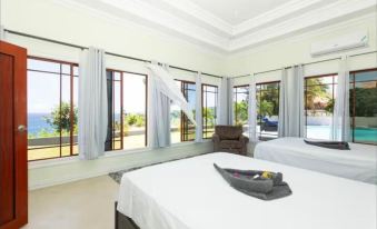 Step into an expansive living space where modern elegance meets island charm. Each of the 7 beautifully designed bedrooms boasts airy ambiance, and private access to the outdoors, ensuring ultimate relaxation and privacy. The en-suite bathrooms are a haven of indulgence, with spa-like features, soaking tubs, and rainfall showers for the perfect unwind after a day of exploration.