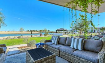 Eagle Village community amenities include a beautiful sparking pool with a variety of depths, oversized spa, loungers, benches, restrooms, outdoor shower, seawater lagoon and dock with complimentary paddle boards and kayaks, covered BBQ dining and grassy areas.