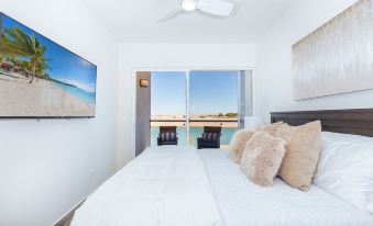Newly built townhome just steps from the ocean with modern furnishings and beautiful seawater lagoon and ocean views. The kitchen is fully equipped with filtered drinking water and all cooking essentials to entertain guests in our open concept condo with a dining table for 6, large sofa and love seat, Smart TV and ample patio seating. Two King bedroom suites are complete with comfortable beds, cozy blankets, pillows, luxury linens, wardrobes, custom window coverings, Smart TV’s, Wi-Fi, private ensuite bathrooms with rain showers and view balconies.