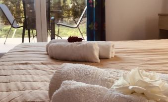 Banos apartments are located in a very peaceful area in Roda. The apartments are 250 meters from the beach and 100 meters from bars and restaurants. Also our pool is free of charge for our guest. The place where we are is very relaxing and very comfortable for families and couples. We provide free wifi in every room and smart tv with internet conection. Inside the rooms are fully equipped with toster, kitchennet, fridge and Apartments in Corfu, Greece are located in Roda which was once a quiet little fishing village but is now a lovely tourist resort catering for the whole family, yet still retaining it’s friendly village atmosphere. Located at the end of a quiet lane just off the main road in Roda, Banos Studios and Apartments is made up of four apartments which sleep up to five people andeight studios that accommodate up to three people. The Apartments and Studios each have a shower room with shower curtain, kitchen, oven, fridge, kettle, cutlery and a large balcony with patio table and chairs and are set in their own gardens with a large lawned area, swimming pool. A short minute walk brings you to the centre of Roda, offering its tavernas, bars, cafes, mini-markets and a vibrant night life into the early hours. The Banos Apartments offer an ideal place to stay to enjoy a holiday in Roda, Corfu.