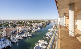 This apartment offers panoramic terrace of 40 m2 (facing south) breathtaking 180 degree view: view of the canals, the town of Rosas, the protected Aiguamolls Nature Reserve, the sea and the Pyrenees.