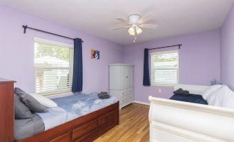A beautiful family-friendly neighborhood right between historic downtown St. Augustine (1 mile) and the Atlantic Ocean at Anastasia Island State Park Beach (2 miles). Comfortable family home with 4 bedrooms and 2 full bathrooms. The house comes complete with a fully stocked kitchen and bathrooms. High-speed wifi included. Wonderful fenced backyard with loungers, seating area, and heated pool! There is also a chimenea for backyard fires on chilly nights and an outdoor shower with hot and cold water to rinse off the sand from the beach. For your information, there are motion-activated security cameras on the outside of the house covering the front of the property and the driveway. We are currently repainting and updating some of the rooms, the bunk room now contains a twin bed and a full-size futon, new pictures will be added as soon as updates are completed.About pets:No pets allowed.About checkOut:Check out before 10:00 AM.About children:Children allowed: ages 0-17.About customRules:Quiet hours are after 10p, no parties are allowed, no smoking allowed, and parking is only allowed in the driveway or in front of the house..About checkIn:Check in after 3:00 PM.About smoking:Smoking is not permitted.About minBookingAge:Minimum age to rent: 25.About events:No events allowed.