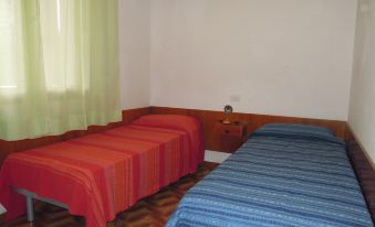 The three-room flat is for 4/5 guests. It consists of a living room with single bed sofa, tv and a kitchen, 1 bathroom with shower (no shower curtain), 1 double room, 1 bedroom with 2 single beds, a big garden surrounded by fence and net and a covered parking place.