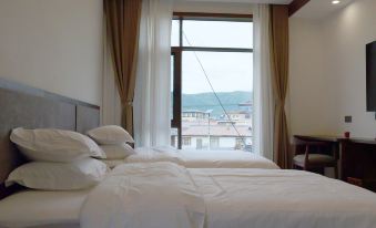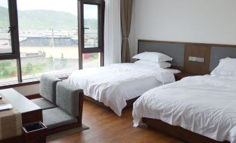 老闆娘情商高會説話,房間裏全實木的傢俱有質感。兩點建議:小貴的房費與簡單的早餐不協調,蔬菜和水果都沒得,品種應該豐富些;門前的停車位應該硬化鋪裝,小石頭既傷胎也可能飛濺,鋪裝物應該全覆蓋門前的排水溝,方便車輛安全進出。小小的建議沒有惡意,有則改之無則加勉。