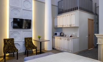 Rooms of various categories are available for booking: Standard, Comfort, Junior Suite and Suite. The rooms are equipped with comfortable furniture, a TV, a refrigerator, a microwave oven, a kettle, a set of dishes, a comfortable work area and a private bathroom.