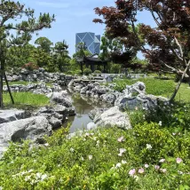 يحيط بالفندق بيئة جميلة، مع جسور صغيرة ومياه جارية وأجنحة وأبراج. أطعم ابني الأسماك لفترة طويلة خلال النهار. لاحقًا، كان الجو مشمسًا جدًا، لذلك وجد جناحًا لمواصلة التغذية. تزهر أزهار الغردينيا وهي عطرة بشكل خاص. لا بد أن المشي على طول البحيرة مريح للغاية في الربيع والخريف.