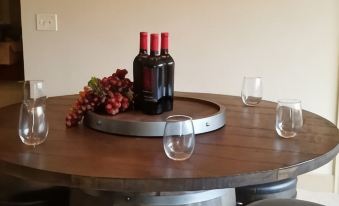 A bit of the old & some of the new we bring KC to life in this mix of past & present. How did KC become a city? What is this city made of? Where is it going? While you find the answers to these questions.........relax! Find peace on the patio & enjoy the fountain, fire pit & company as you enjoy a glass of local wine & the pond out back. If the out doors don't call you, chance your hand at cards inside instead of the larger KC casinos. Cozy up to a movie or even workout, so much to do, so little time.