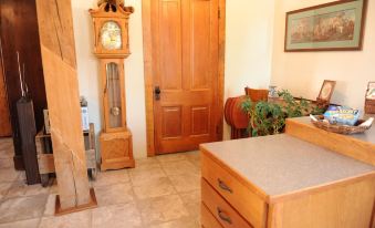 Relax in The Old Mill's second-floor, studio apartment unit in the comfort of modern amenities with a mix of cozy, eclectic, antique and handcrafted furnishings and a fully-furnished kitchen. Marvel at The Old Mill's 1867 craftsmanship and mortise and tenon construction. Spectacular wooden beams, columns, timbers and ceiling joists were left exposed when the building was repurposed. Flooring was salvaged to frame the doors and windows. The architectural and engineering prowess that created Shell Rock's landmark is hard to imagine.