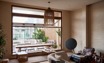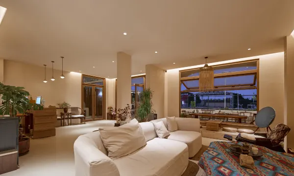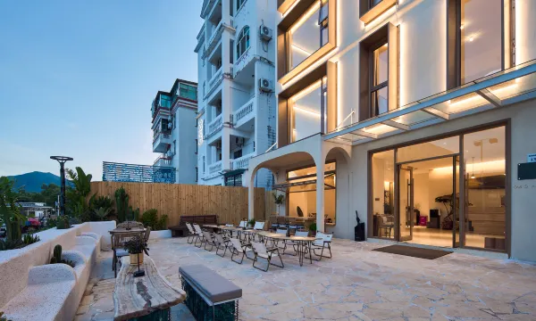 聽説老闆本人花費不少設計打造,從風格來説,時尚簡約、清新又優雅,酒店入户和大堂設計現代高級又有自然氣息,酒店的前院有長桌可以提供給客人們聚餐,厚厚的木板非常有個性。