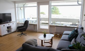 Die Wohnung ist gemütlich und praktisch eingerichtet mit schönem Blick auf das Meer. Die Küche ist super ausgestattet mit allem was man braucht. Der Kontakt mit der Vermieterin war sehr nett und der Check-In total unkompliziert. Der Wohnkomplex versprüht 70er-Jahre-Charme ist aber sehr gepflegt. Die Wohnung selbst ist modern. In der näheren Umgebung befinden sich ein kleiner Laden, einige Essgelegenheiten und der Hansa-Park. Der Strand ist hier nie überlaufen. Der eigene Parkplatz rundet das Angebot ab.