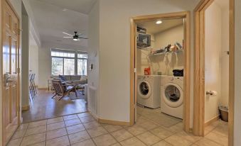 Take a seat at the wraparound bar to chat with the chef during meal preparations. The upgraded, fully equipped kitchen boasts stainless steel appliances and ideal additional devices like a blender, toaster oven, and dual oven. You'll also find basic spices, condiments, and ample dishware to make your cooking experiences a breeze. Dine at the 6-person glass table and savor a delicious feast while taking in mountain views!