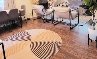 Comfortable Living Space – Relax in the open living room with a smart TV, perfect for movie nights or catching the big game.