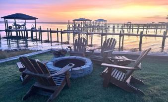 If relaxing on the large deck, watching dolphins swim, otters play, or a line of shrimp boats heading out to sea is your thing, Chad Landing is for you! Bring your boat, skis, kayak, or paddleboard and spend the day at a nearby sandbar—just 10 minutes away. Catch dinner (red/black drum, trout, or the occasional shark), toss a line, and see what happens. Enjoy a campfire on the shore and let the kids have fun in the game room. It’s the perfect coastal getaway for friends or family vacations.