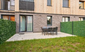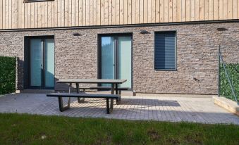 Svoboda nad Upou: Luxurious apartment house, 2 storeys, built in 2024. 2 houses in the residence. In a sunny position, 100 m from the edge of the forest. Shop 300 m, supermarket 500 m, restaurant 300 m, bicycle rental 3 km, bus stop "Svoboda nad Úpou, Maršov I" 300 m, 400 m. Minigolf, cable car 3 km, slopes 1.5 km, ski rental 300 m, ski bus stop 200 m, ski school 1.5 km, children's ski school 1.5 km, sled run 3 km, cross country ski track 2 km, children's playground 300 m. Nearby attractions: Stezka korunami Stromů Janské Lázně 3 km, Aquacentrum Janské Lázně 3 km. Well-known ski regions can easily be reached: Svoboda nad Úpou Skiareal Duncan 2 km, SkiResort Janské Lázně 3 km, SkiResort Pec pod Sněžkou 8 km. Well-known lakes can easily be reached: Dolce Trutnov 12 km. "Trendy Mountain Terrace Retreat", 3-room apartment 72 m2, on the ground floor. Object suitable for 4 adults + 2 children. Spacious and bright, comfortable and beautiful furnishings: 2 rooms, each room with 1 double bed. Exit to the terrace. Large kitchen-/living room (oven, dishwasher, 4 induction hot plates, toaster, kettle, freezer, electric coffee machine, Capsules for coffee machine (Nespresso), combination microwave) with 1 double sofabed and TV. Exit to the garden. Shower, sep. WC. Terrace furniture, box-room. Facilities: Internet (WiFi). Parking (2 cars). Suitable for families.