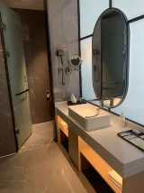 Я останавливалась в этом отеле на одну ночь. Номера в отеле показались новыми, свежими. Оформлены в уютном современном стиле. Умный туалет, система умного дома. Разные гигиенические принадлежности. Удобная кровать. Шикарный вид из окна. Хотелось остаться в отеле еще на пару дней. Хочу отметить завтрак в отеле. Очень вкусный. И китайский вариант и европейцы тоже найдут для себя подходящие блюда. Есть кофе (несколько вариантов), есть вафли, масло, каша, суп. Есть местные блюда и десерты.
