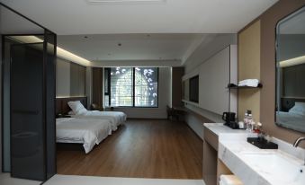 房間大,寬敞。空氣清新。這次出差入住的雙床房體驗非常好!房間寬敞明亮,兩張床的尺寸標準且床墊軟硬適中,被褥乾淨整潔沒有異味,晚上睡得特別舒服。衞生間乾濕分離做得很到位,洗漱用品齊全,熱水供應充足穩定。酒店地理位置優越,離辦事地點很近,周邊餐飲選擇也多,前台服務人員態度熱情,辦理入住和退房都很高效。房間隔音效果不錯,即使在走廊也不會覺得吵鬧,整體性價比很高,下次出差還會選擇這裏!