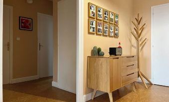 The 2-bedroom apartment is a colorful mix of flowers and cute animals and has an amazing view of Lake Geneva and the cliff that gave its name to Thollon Les Mémises. It occupies the house's ground floor and has a terrace that opens to the 1500 sqare meter garden. It is bathed in sunlight at all time of the day. The gym's mat area often turns into a playroom, while adults enjoy it for yoga, weight lifting or boxing.