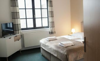 At the hotel, each room includes a closet. Červený Mlýn provides some rooms that feature city views, and the rooms come with a private bathroom with a shower. All rooms at the accommodation come with a seating area and a flat-screen TV with cable channels.
