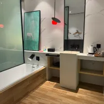Super nice hotel. Great price. Very much enjoyed it. Projector. Bath. Bidet. Comfortable bed. Very happy with it.