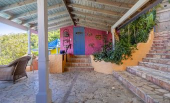A short flight of steps brings you to Papaya and Vanilla suites. Papaya has its own private deck, complete with a tree growing through it and outside shower, all positioned to catch the cooling breezes of the Caribbean.