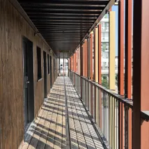 Near to bus station. Very modern and stylish building. Everything is very fresh and new. Comfortable beds and crystal white linens. You can use small canteen with the fridge. Breakfast is also available. I had a great stay