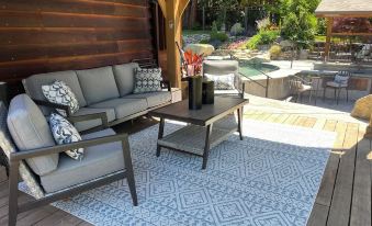The second unit is available for an additional charge and consists of a private detached luxury studio suite with private bath and kitchenette. Select 8 guests or more to gain access.