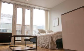 Guests have full and private access to the entire studio during their stay. This includes the bedroom, the living room with extra sleeping space, the fully equipped kitchen, the bathroom with shower and heating cables. You also have access to a washing machine, WiFi, air conditioning and smart TV. Paid parking is available on the property if agreed in advance.