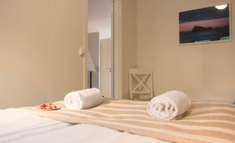 Guests have full and private access to the entire apartment during their stay. This includes the bedroom, the living room with extra sleeping space, the fully equipped kitchen, the bathroom with shower and heating cables, as well as the private balcony with a view. You also have access to a washing machine, WiFi, air conditioning and smart TV.