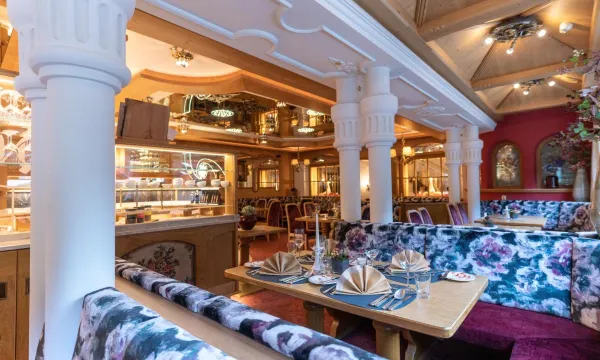 يقدم المطعم مجموعة كبيرة من الأطباق النمساوية والعالمية اللذيذة، ويشمل نظام الإقامة مع وجبتي طعام بوفيه إفطار سخي وعشاء مكون من 4 أصناف مع إمكانية اختيار الوجبات ومساء تقليدي مع موسيقى تيرولية وحفل عشاء مع تذوق النبيذ ووجبات خفيفة بعد الظهر وكعك وبوفيه مع سلطات ومقبلات وحلويات متنوعة.