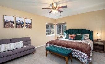 Bedroom & Game Room: Full bed, sofa, flat-screen TV