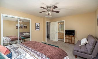 Primary Bedroom: Cal King bed, smart TV, en-suite bathroom