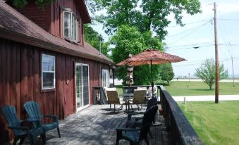 Our place sits on 1/3 acre, across the road from Lake Michigan and the Mariner's Trail, which runs along the coastline. The way our home is angled, you can see the lake from much of the yard and just about every room of the house. We have Swings, Volleyball, Croquet, Badminton, & Sidewalk Chalk! We have a Fire-Pit and a Wood Shed [which may or may not have firewood at any given time]. To round out the outdoor fun, we have a huge Wrap Around Deck w/Gas Grill [Propane Provided], Picnic Table, Patio Table w/Umbrella, and extra chairs.