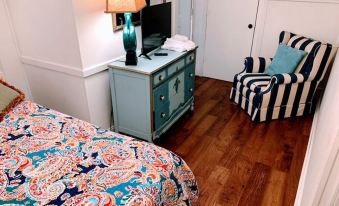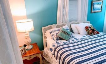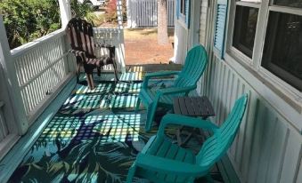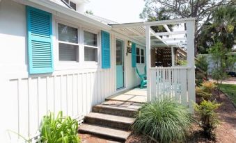 The Blue Dolphin charming 1930 beach cottage.. It is a short walk (300 steps) to the Atlantic ocean. Sleeps 6 with 3 bedrooms plus an extra sleep sofa in living room which is a full pullout bed. Two full baths. No beach parking needed. across the street in the back to the beach access. The cottage is dog friendly. For certain dogs. Ask owner. Two shaded porches provide great outdoor space with picnic table . Central Heat and Air and, off-street parking is provided for 2 cars. Has everything in the kitchen : appliances (refrigerator/freezer, dishwasher, range, microwave ), plus blender, coffee maker, dishes, cookware, pots, pans, toaster . Bedroom #1 has a king bed and Roku Television. Bedroom #2 has a full-size bed with smart tv. Sleeping room 3 has a queen size bed with a chest of drawers.. Smart T V. Plenty of places to refresh and sleep. Two full bathrooms. One with a shower the other with a bathtub with shower. Other features include a laundry room with full-size washer and dryer, Comcast WIFI high speed internet, 55-inch flat screen TV in the living room with Direct TV. Master bedroom has Roku TV and local channels. 2nd Bedroom smart T. V. Freshly laundered linens and towels are provided. Comcast Wi Fi . Direct T V in the living room . The cottage is next door to a second story unit with no shared walls. It is 2 blocks from 5 restaurants, and 1/2 block from Memorial Park with an updated fenced kids playground, sand volleyball and tennis courts, pavilions with picnic tables and grills. We abide by virus deterrent cleaning protocols using disinfectant and washing in hot water. Enjoy yourself and get on "Tybee time" in our beach house.About pets:Pets allowed: dogs less than 50 lbs per pet (limit one pet total).About checkOut:Check out before 10:00 AM.About children:Children allowed: ages 0-17.About customRules:Dogs on a case by case basis ask host. We cannot have dogs on the insurance aggressive animal list..Tybee Island has beach rules and a good neighbor policy. These will be in the Welcome Package in a separate email,The Cottage has parking for two cars..About checkIn:Check in after 4:00 PM.About smoking:Smoking is not permitted.About minBookingAge:Minimum age to rent: 25.About events:No events allowed.