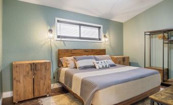 The Bedroom features a king-sized bed, flat-screen TV, clothing storage, nightstands, and a queen-sized air mattress available.