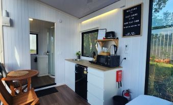 Experience the "Kiwi Farm Life" at Dairy Flat Farm Cabin, surrounded by picturesque sunset views and stunning green pastures. This tiny house escape provides all modern amenities, allowing for an eco-friendly retreat in the rustic and suburban surrounds of Waitoki. Enjoy a nice BBQ dinner or a firepit and watch the stunning sunsets. or have cute cuddles with baby sheeps, bunnies, chicken pigs and even cows:)