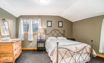 The beautiful forestry and hills await you here in Thompsonville, Michigan when you book a stay at this lovely home located within Crystal Mountain Resort. The front porch is a great place to start the day with a cup of coffee and a book while listening to the birds chirping in the trees. When everyone starts to wake up for the day, hop into the full kitchen complete with bar seating to make a delicious meal for the whole group. Once everyone has returned from a full day of skiing at Crystal Mountain or enjoying the sand at Lake Michigan, throw a few logs into the firepit and roast some marshmallows for s'mores on warm summer nights. A gas fireplace also awaits guests inside for chillier nights spent watching a movie or playing board games with friends.