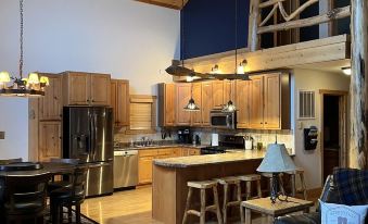 The house had three queen bedrooms, 2 1/2 baths, a large great room with a modern fully functional kitchen, a dual reclining sectional couch, a large 60 inch Google TV, a pellet stove for cool evenings, and a full laundry. The shaded front porch is a wonderful gathering spot for guests. High speed internet is provided throughout the property.