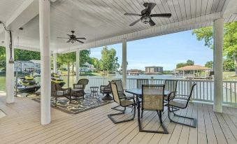 Beautiful 4 br 4 bath home with POOL & Large dock. Fire pit by lake. Right across from Bridgewater. Wifi, paddleboard, 2 kayaks. 2 masters, 2 kitchens, 1 on each level, both have views of the large TVs & bar seating. Commercial ice maker, 2 covered patios, 1 off of master. Sleeps 10. Large covered & uncovered dock with bar area, table & plenty of seating. Views of the lake from 3 bedrooms, deck, pool & fire pit areas. Eletric blinds, fans, large yard. Very short boat ride to all the major restaurants, Mangos, Jakes place & Drifters. 5 mins to Kroger or Food lion shopping centers. No Wake Zone, so perfect for swimming and floating at the dock. This home has it all, electronic basketball, ps5, board games, ect.About pets:No pets allowed.About checkOut:Check out before 11:00 AM.About children:Children allowed: ages 0-17.About checkIn:Check in after 4:00 PM.About smoking:Smoking is not permitted.About minBookingAge:Minimum age to rent: 25.About events:No events allowed.