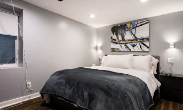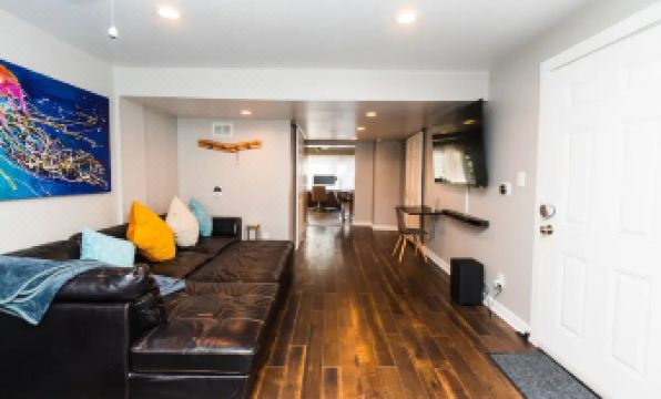 This is the ground-level unit of a two unit townhouse. Features a spacious kitchen, work station (just bring a laptop), a bathroom with a very fancy shower and heated floors. The bedroom has a washer/dryer, and a TV that descends from the ceiling. Access a bonus basement living room with a big TV and comfy couch. You'll have access to a boutique gym a few blocks away. About pets:Pets allowed: dogs and cats less than 50 lbs per pet (limit one pet total).About checkOut:Check out before 11:00 AM.About children:Children allowed: ages 0-17.About checkIn:Check in after 3:00 PM.About smoking:Smoking is not permitted.About minBookingAge:Minimum age to rent: 21.About events:No events allowed.