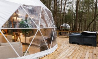 A rare, elevated stay in Red River Gorge, this property offers the perfect setting for an upscale glamping experience. This newly-built dome combines modern design with earthy textures- giving you a "home sweet home" type feeling. Bring your crew over the river and through the woods to our 26-acres of woodlands, with free access to Spirit Lake. Located 15 mins. from Natural Bridge State Park in Daniel Boone Nat. Forest. Come hike, climb, and explore the good ole' outdoors! *4WD VEHICLES REQUIRED*About pets:Pets allowed: dogs less than 50 lbs per pet (limit 2 pets total).About checkOut:Check out before 11:00 AM.About children:Children allowed: ages 0-17.About checkIn:Check in after 4:00 PM.About smoking:Smoking is not permitted.About minBookingAge:Minimum age to rent: 18.About events:No events allowed.