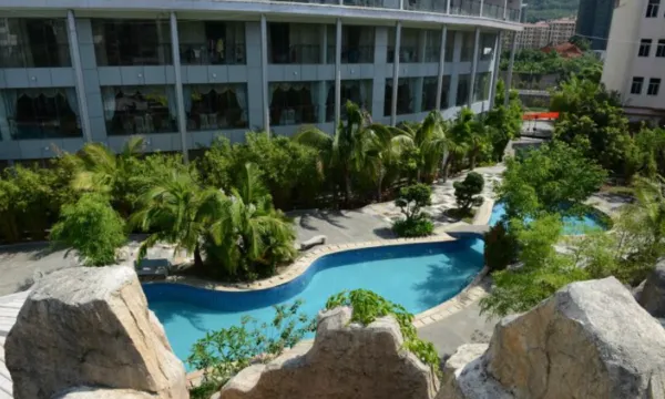 The Leroy Hotel Wuzhishan (Wuzhishan Fudelai Jiudian) stands beside the bank of the Nansheng River.