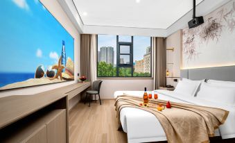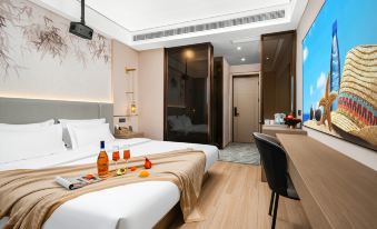 房間很乾凈,還帶智能,入住很滿意,投影真的太爽了!對面就是商場吃喝玩很方便,入住酒店地下停車場還免費真的物超所值!推薦