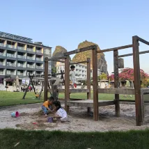 الفندق رائع، ويضمّ الكثير من ألعاب الأطفال - أراجيح، وحفرة رمل، وحديقة، وأربعة مسابح كبيرة - لتلبية جميع احتياجات الأطفال! خلال عطلة الصيف، كانت الساحة تعجّ بالأطفال، لكن الغرفة كانت هادئةً للغاية ليلاً. تصميمها بسيطٌ وأنيق، والغرفة مُجهّزة بنعال، وفرشاة أسنان، ومقعد مرتفع، ومقعد مرحاض - ليتمكن الصغار من اللعب طوال اليوم دون استخدام أيديهم! كانت رحلة "جولدن دراغون كروز"، التي ساعدنا موظفو الاستقبال في حجزها، صعبةً للغاية. عندما عدنا إلى المنزل ذلك المساء، لم نتمكن من الحصول على سيارة أجرة، فرتّب لنا الفندق واحدةً. [غطاء للوجه] كانت الخدمة رائعةً ومُريحةً للغاية طوال فترة إقامتنا.