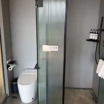 إنه من تلك الأماكن التي تبدو جميلة في الصور، لكن التجربة على أرض الواقع بائسة بعض الشيء. الغرفة بيضاء، لذا يصعب رؤيتها عن قرب؛ وزواياها حالكة السواد. الحمام بدون تهوية، لذا حتى مع إغلاق الباب، تنبعث رائحة كريهة من الغرفة عند استخدام المرحاض.