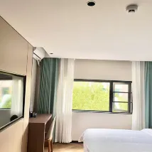 كانت الغرفة جيدة بشكل عام، لكن تعامل نادل الإفطار كان سيئًا للغاية. قالوا إن الإفطار سينتهي الساعة 9:30، ولكن عندما صعدتُ حوالي الساعة 9:00، كان النادل قد نظف معظم الأطباق وكانت جميعها فارغة. بعد التحدث مع النادل، بدا عليه نفاد الصبر.