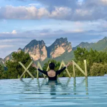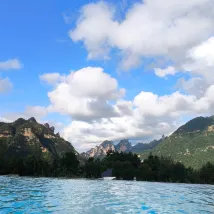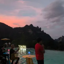 كان المسبح اللامتناهي في نُزُل "كيمان يويلينغ فالي" للمبيت والإفطار، بلا شك، أكثر ما أدهشني خلال رحلتي إلى تشانغجياجيه. فهو يُجسّد غروب الشمس الأكثر سحرًا في وولينغيوان، مُحوّلًا إياه من مجرد تجربة سياحية إلى تجربة غامرة.