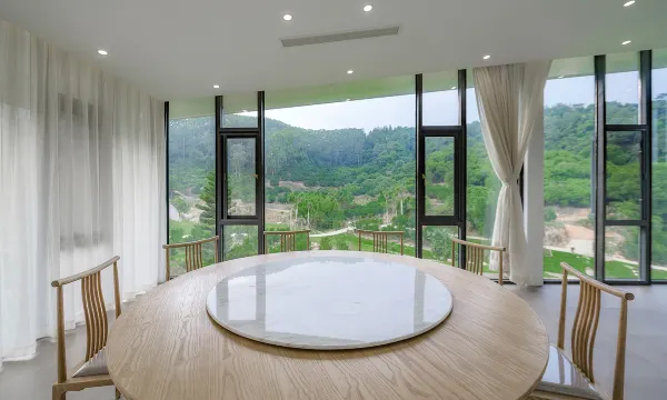 Guosu hotel is close to Zhangzhou Changtai Tianzhushan National Park, it has the characteristics of quiet and plain, tropical rain forest and other natural landscape, poetic everywhere, the mountains, valleys and lakes. On either side of it, a gorge flows down from the top. It was once a gathering place for the daily life of ancient villages. Walking on it is really a nice thing we can imagine. around the green trees and orchard, a group of buildings with a modern and minimalist design are located inside, hotel restaurant, tea room, book bar, coffee shop, conference room and other facilities all are included.